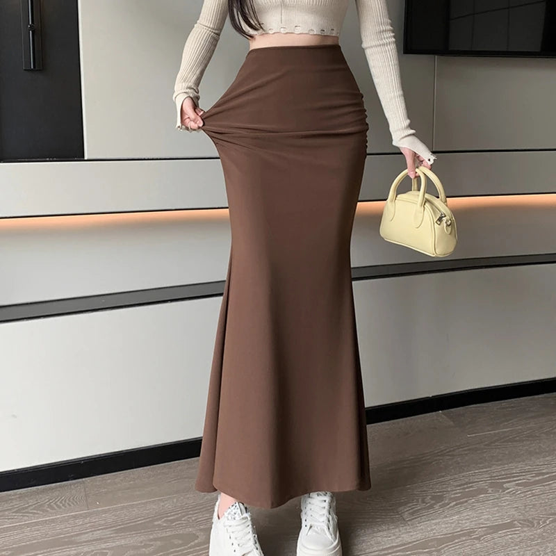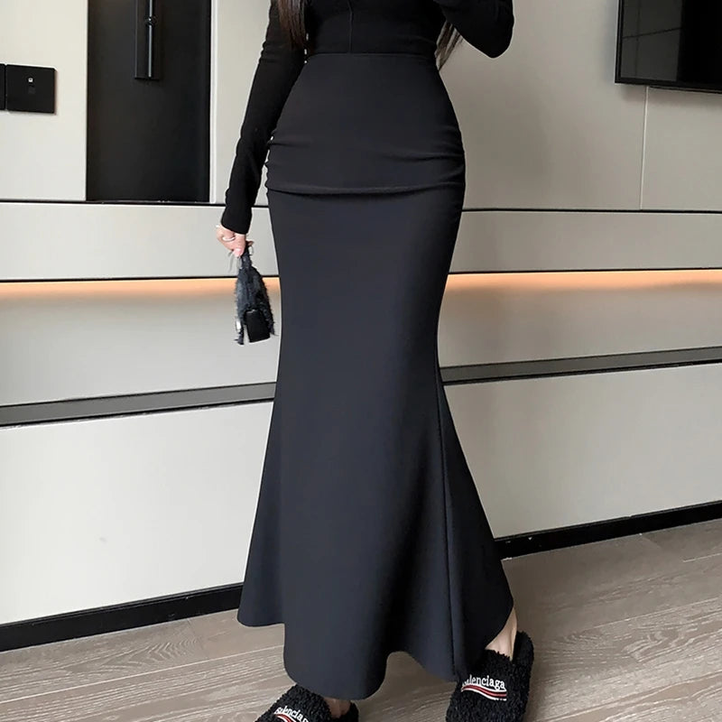 Elegant Fishtail Long Black Skirts Women 2026 High Waist Streetwear Y2k Clothes Korean Style Slim Office Lady Harajuku Mid Skirt