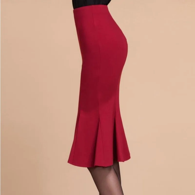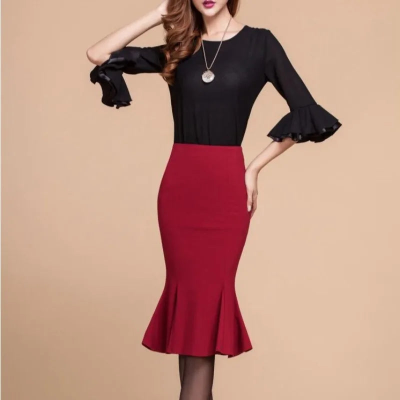 High waist fishtail skirt skirt in the long ruffled slim large size bag hip stretch skirt